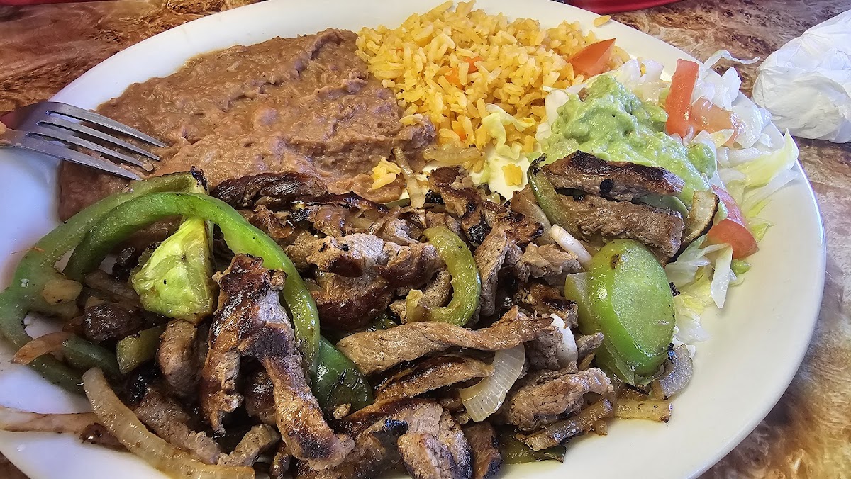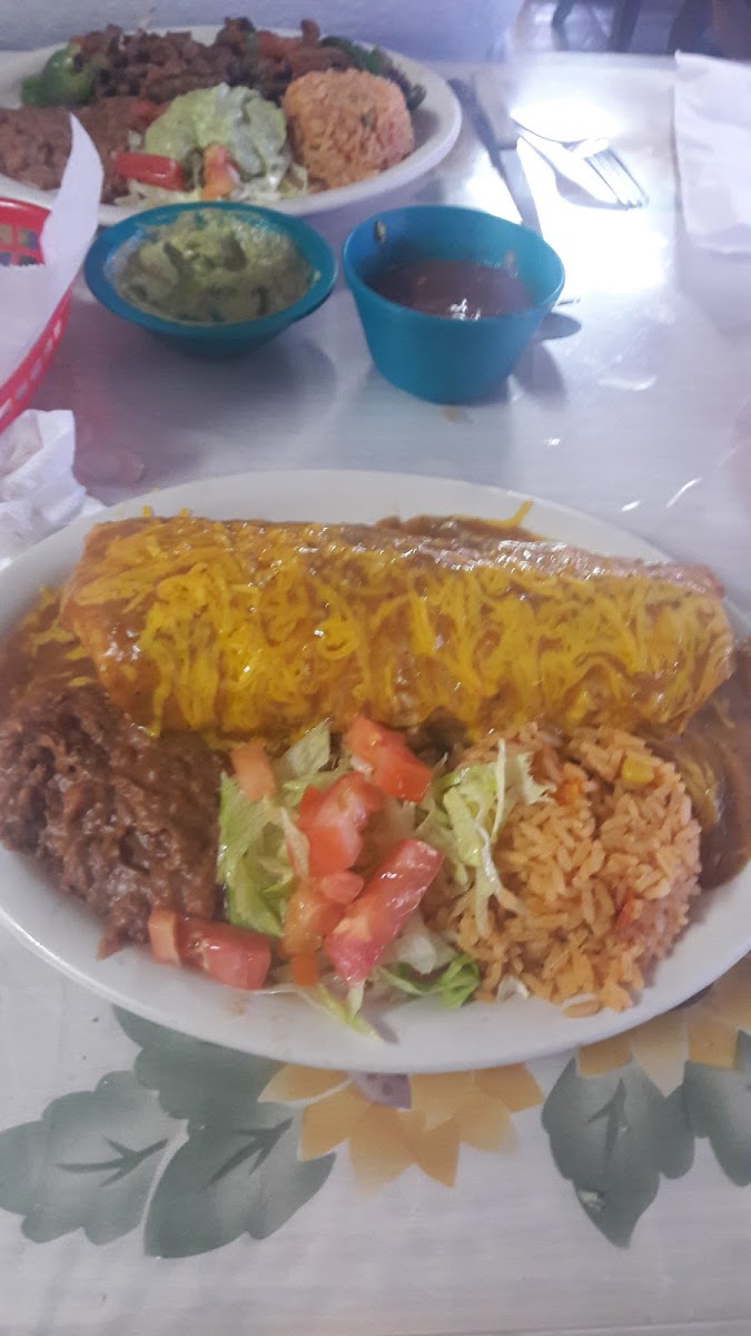 We came in late about 10 pm ordered the waitress attended us quickly, we ordered our drinks, she brought our chips and salsa the salsa was one of the best cold salsas I’ve had and I don’t usually like cold salsa but this one here is different. Space was clean place was empty. The food was so delicious we ordered a Jalisco burrito, my husband ordered a fajita flameado plate and my daughter ordered a beef fajita. When I say it was the best burrito I’ve had I mean it. Stuffed burrito with enchilada sauce drowned all over the top, in the inside I had asada meat, sour cream, guacamole, lettuce, tomatoe. It was so flavorful. I’ve had these at many places this exceeded all the rest. My husband had the fajita plate he loved it. The lemonade was great and the service was excellent. The waitress was the best she even gave my daughter $2 in change so my daughter can by herself a ball from the toy machine and she bought my son one as well. Above and beyond. I would definitely come back. The waitress I don’t know your name but God bless you, you made our night. My husband was hangry and this hit the spot. I will definitely be coming back